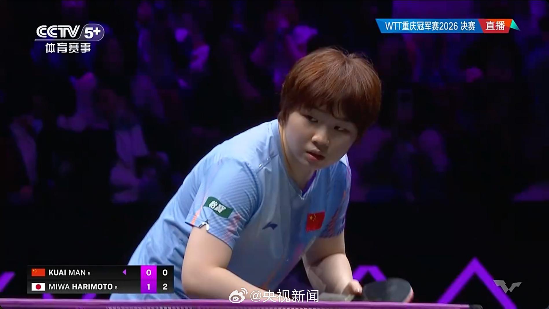 据央视新闻微博消息,2026WTT重庆冠军赛女单决赛,蒯曼3比4不敌日本选手张本美和,获得亚军。 比分:6-11、11-9、11-7、9-11、6-11、11-9、5-11。